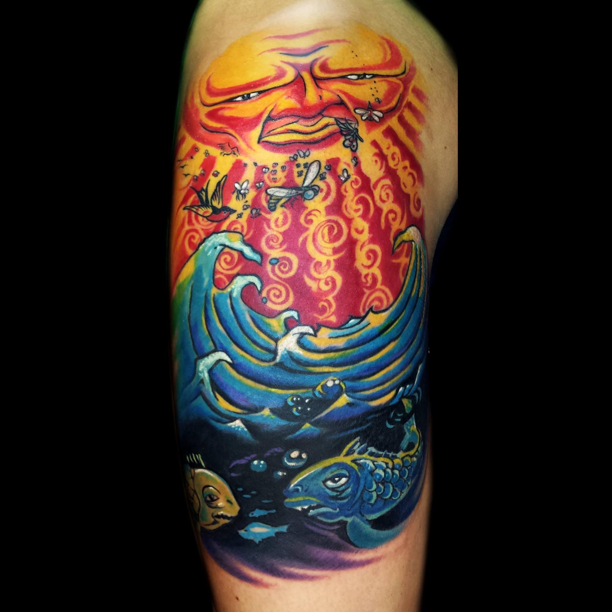 To freedom' tattoo. the video, predictably, takes place in a tattoo parlor, where an animated sublime sun tattoo recites the song's lyrics. This bright sun is perfect for a wrist tattoo. See more ideas about sublime tattoo, tattoos, sublime. Da original artist is opie ortiz but its impossible to get a tatt done by him. The art work on my half sleeve, chest and shoulder piece is second to none.